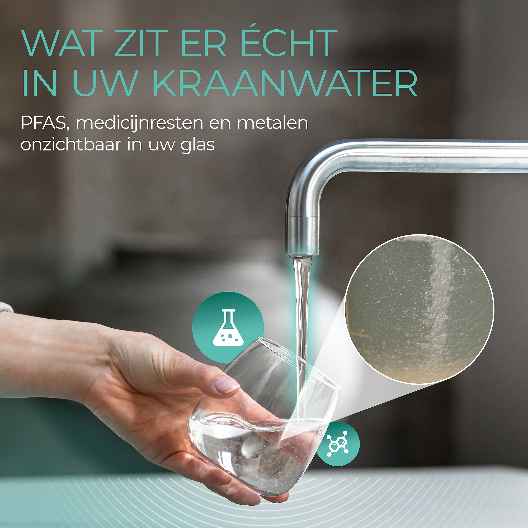 - Altijd direct zuiver drinkwater: verwijdert o.a. microplastics, PFAS en zware metalen.